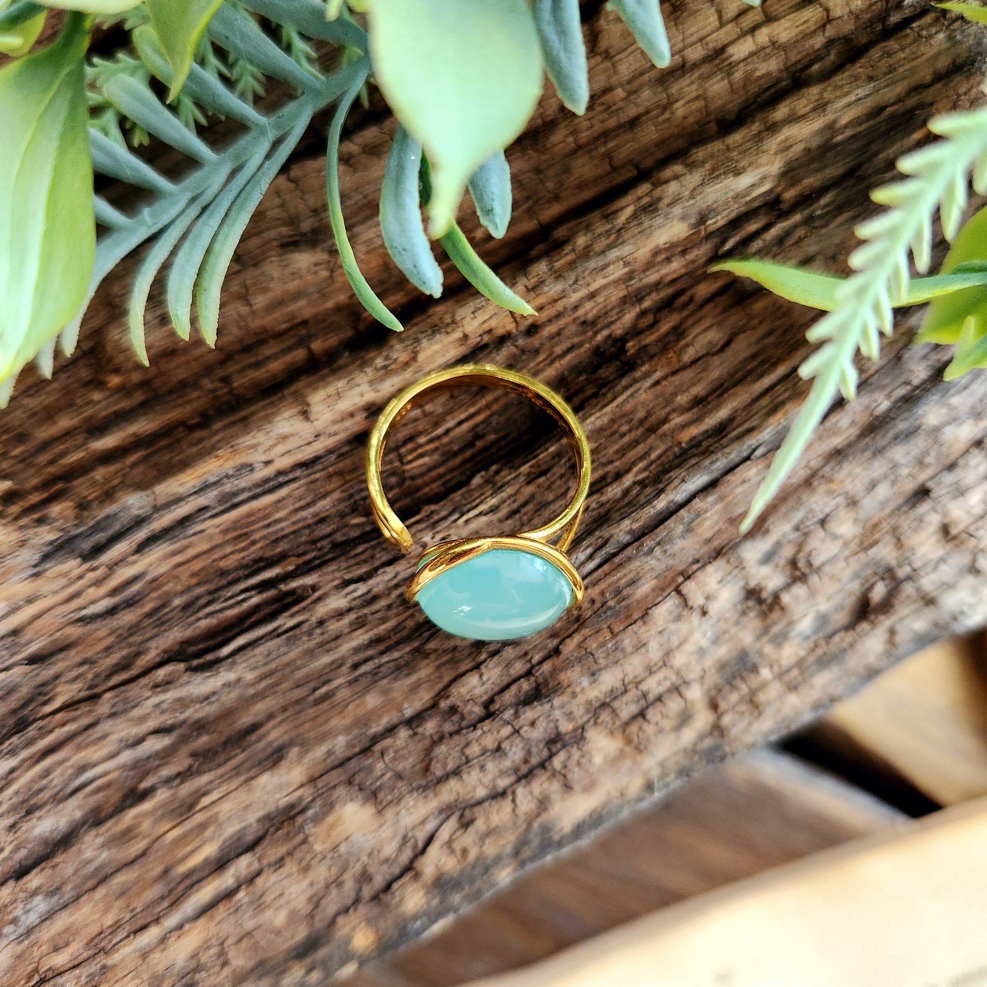Bague réglable "Dorée" - Aigue marine - Argent plaqué or 925