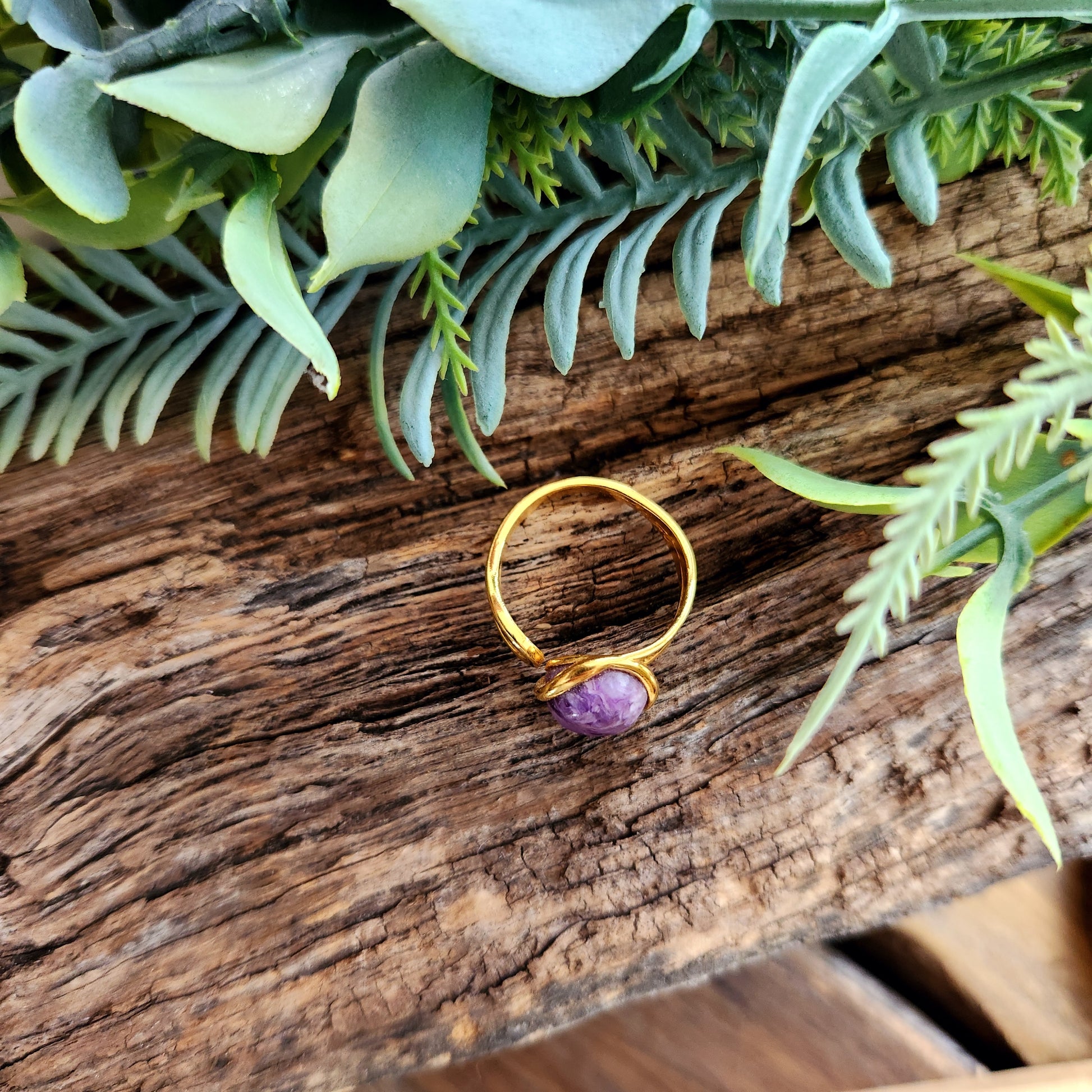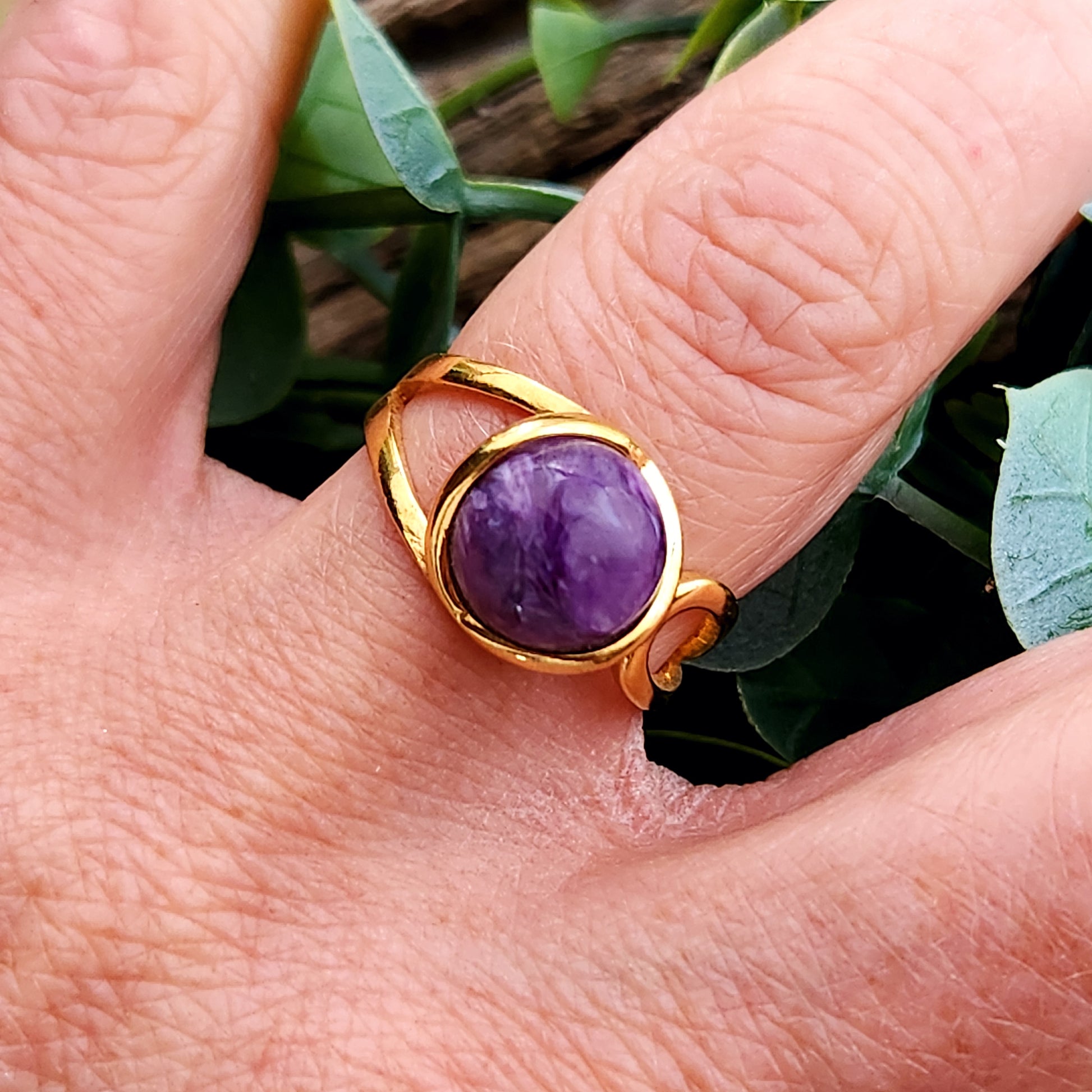 Bague réglable "Dorée" - Charoïte - Argent plaqué or 925