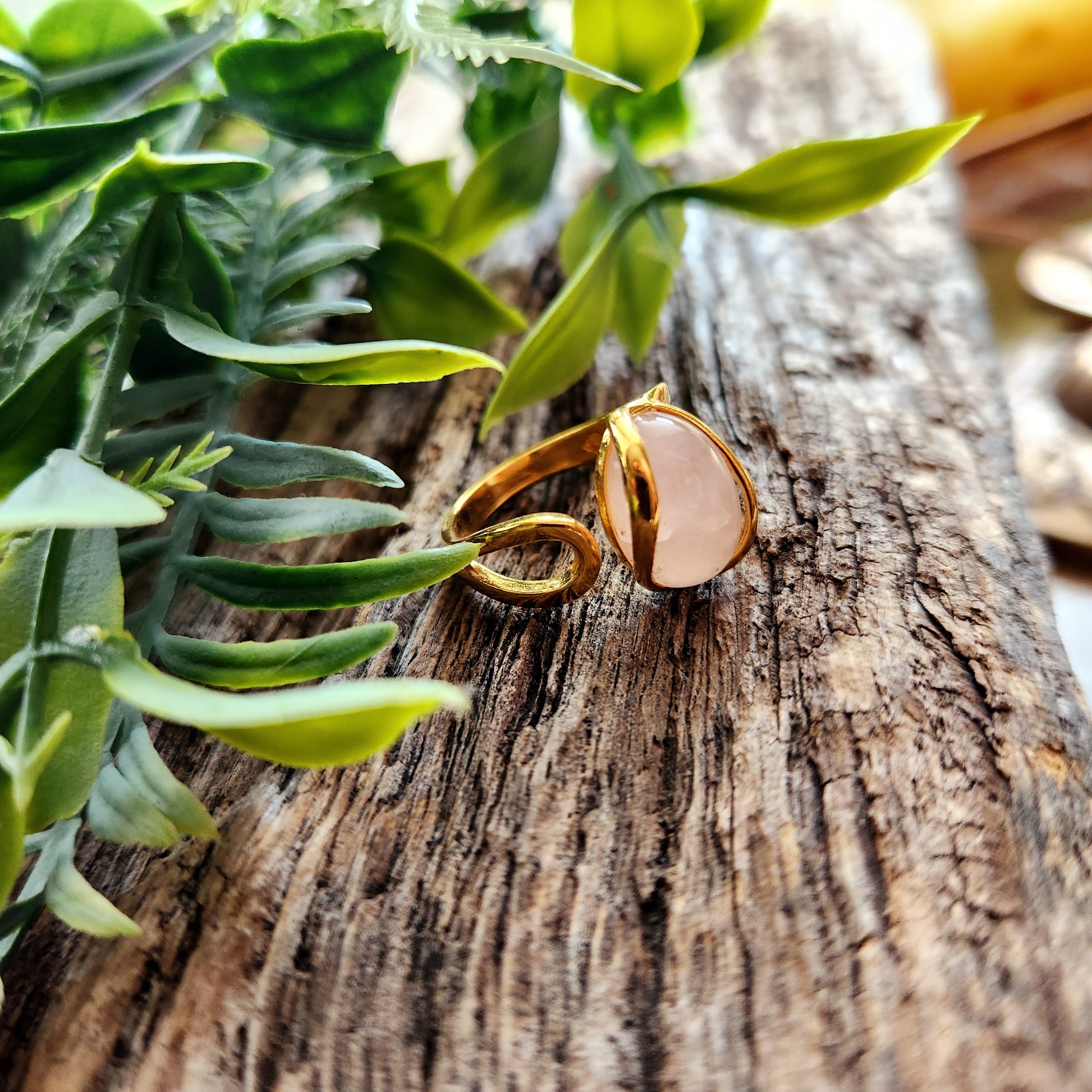 Bague réglable "Dorée" - Quartz rose - Argent plaqué or 925