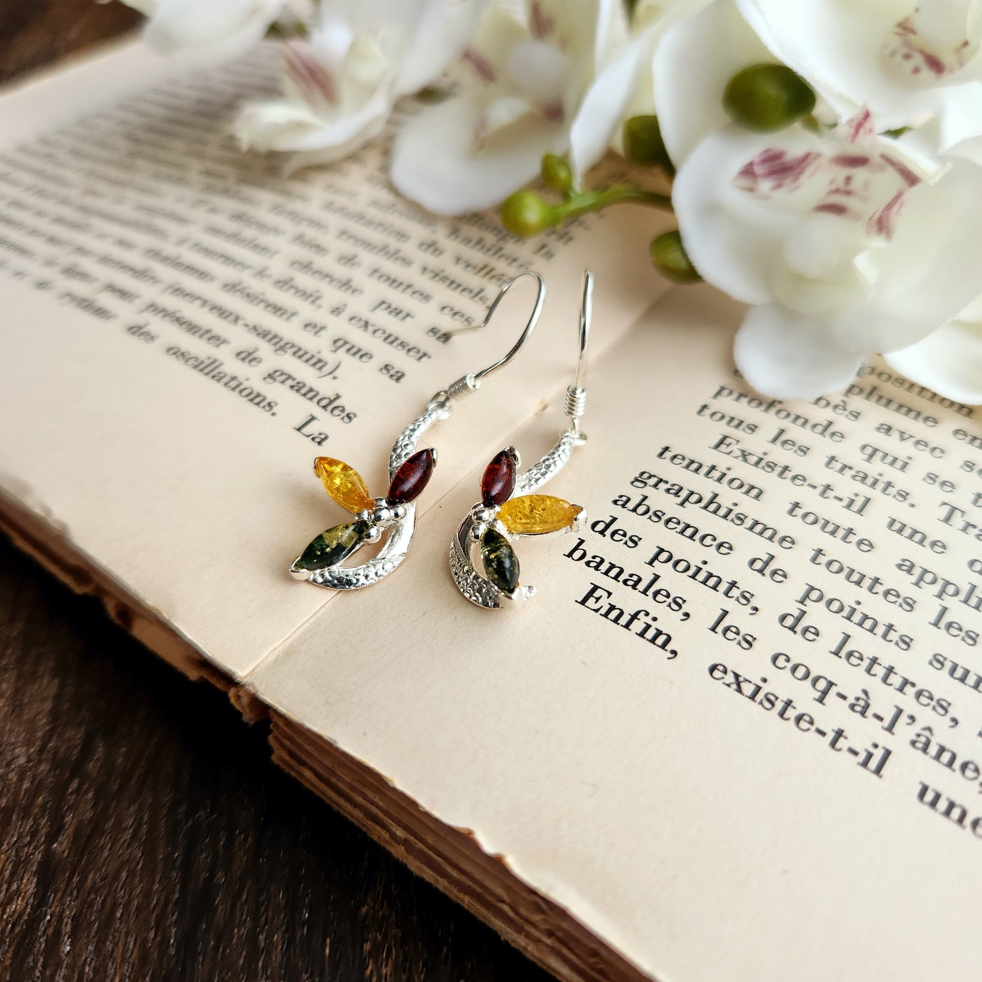 Boucles d'oreilles en Ambre "3 couleurs" - Fleur - Argent 925