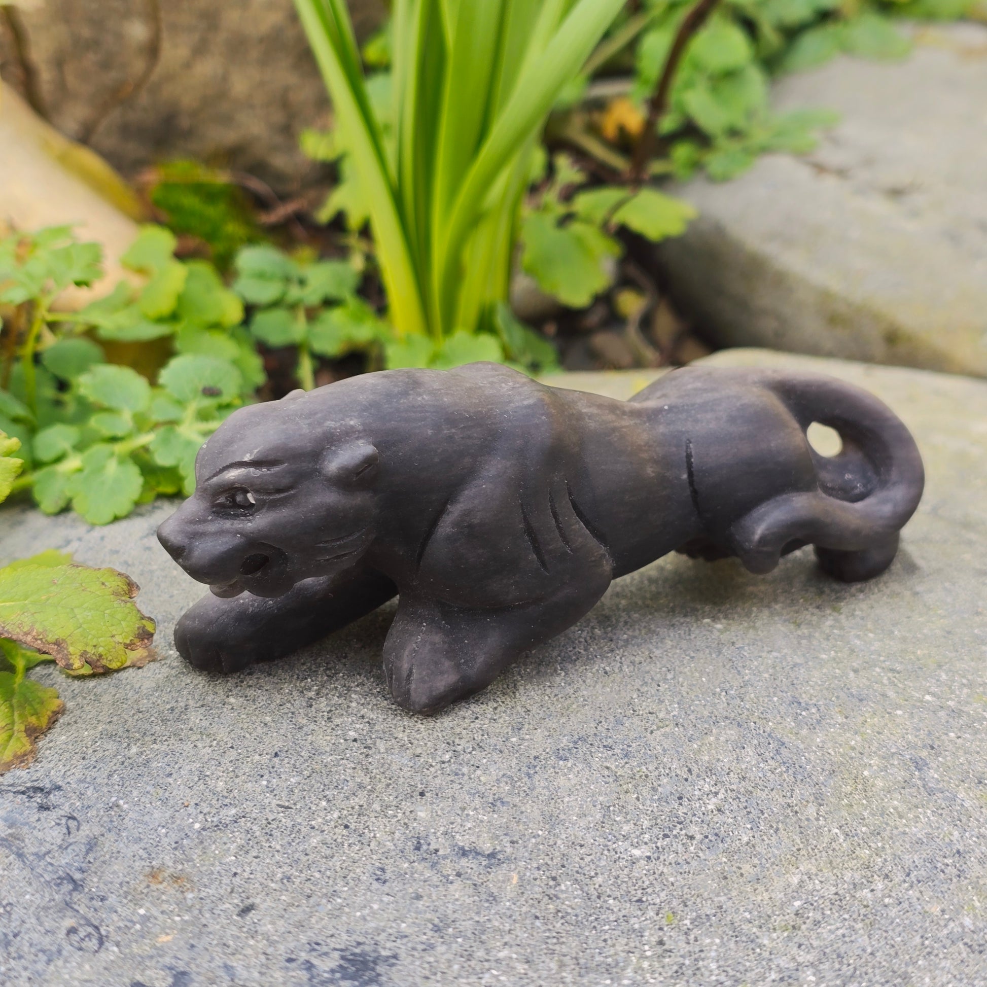 Le léopard en pierre naturelle symbolise la force maîtrisée, la confiance et l’indépendance. Animal discret mais puissant, il incarne la capacité à avancer avec souplesse, à observer avant d’agir et à affirmer sa présence sans domination. En sculpture minérale, il représente aussi l’ancrage et le courage intérieur, invitant à assumer pleinement sa singularité tout en restant connecté à son instinct.