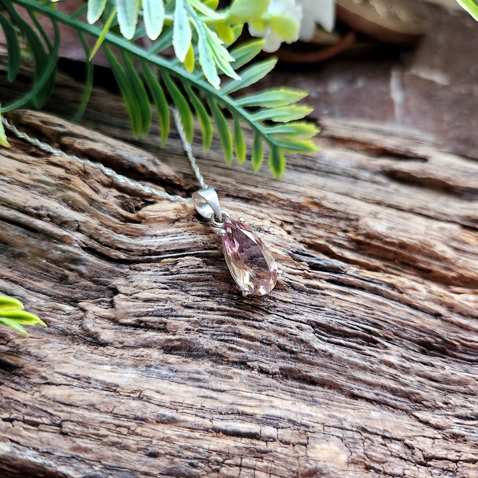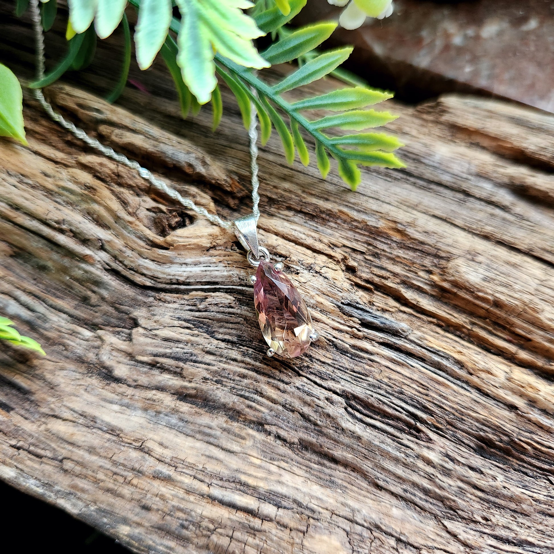 Pendentif en Améthyste rose facettée + chaîne Argent