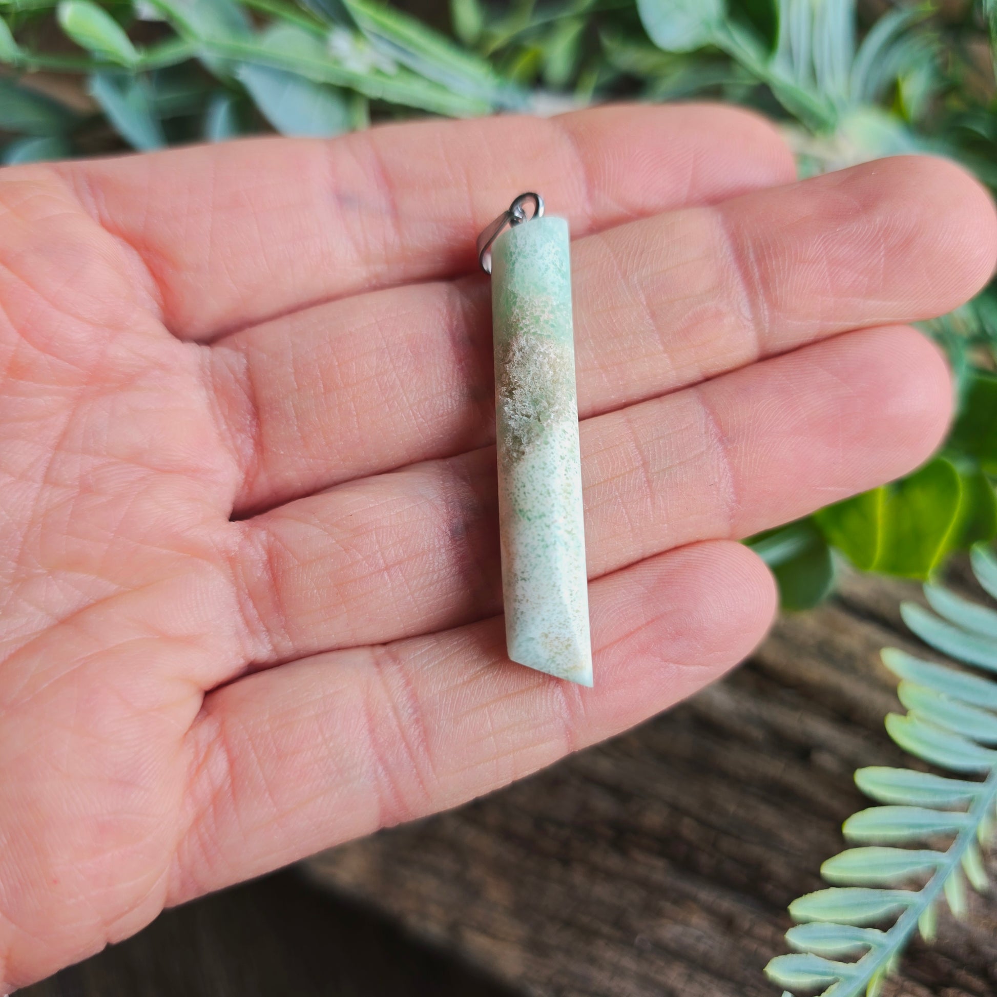 Un pendentif Totem à la forme tubulaire, symbole d’axe, de stabilité et de lien entre la terre et le ciel. Sa silhouette verticale évoque l’alignement intérieur et la circulation harmonieuse des énergies.