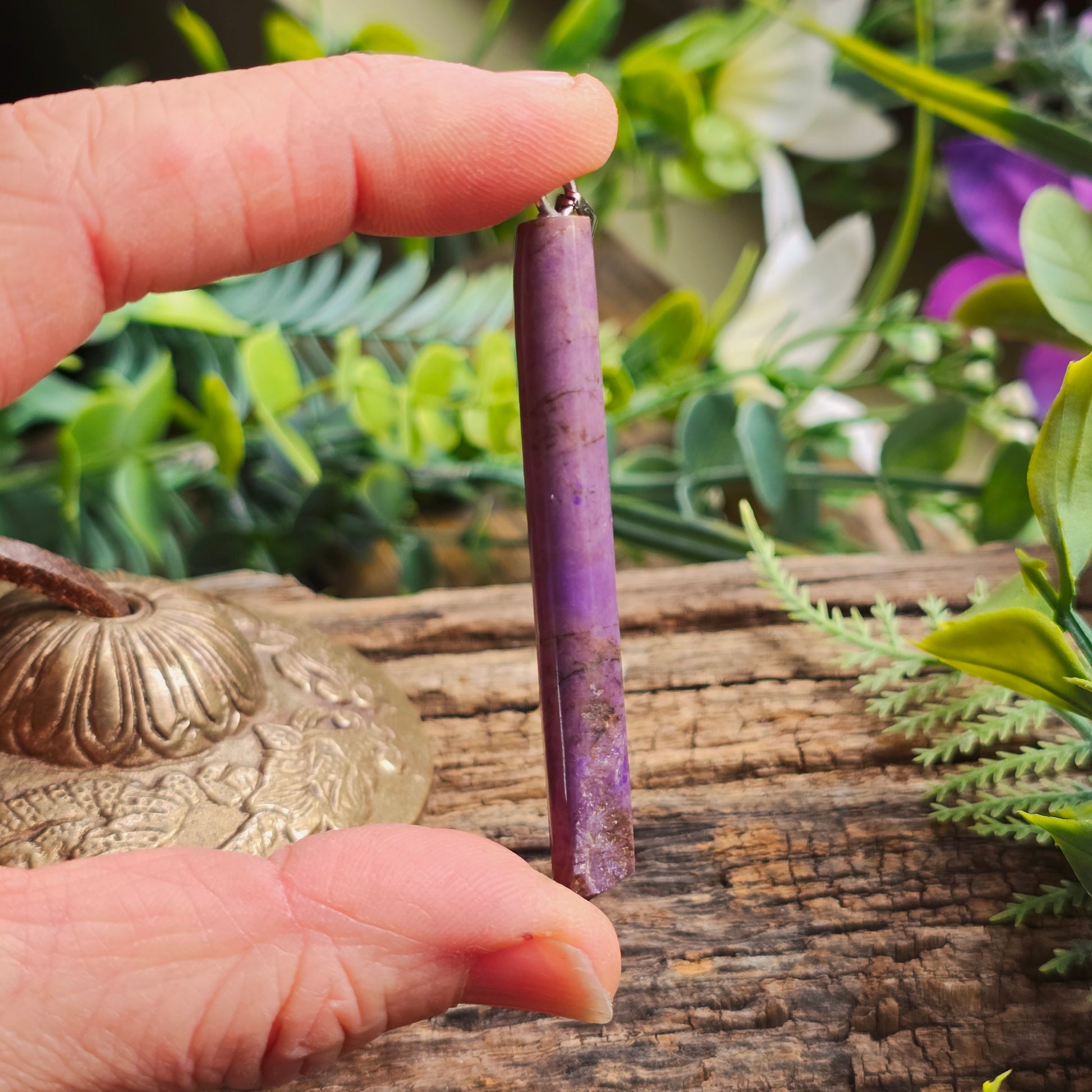 Un pendentif Totem à la forme tubulaire, symbole d’axe, de stabilité et de lien entre la terre et le ciel. Sa silhouette verticale évoque l’alignement intérieur et la circulation harmonieuse des énergies.