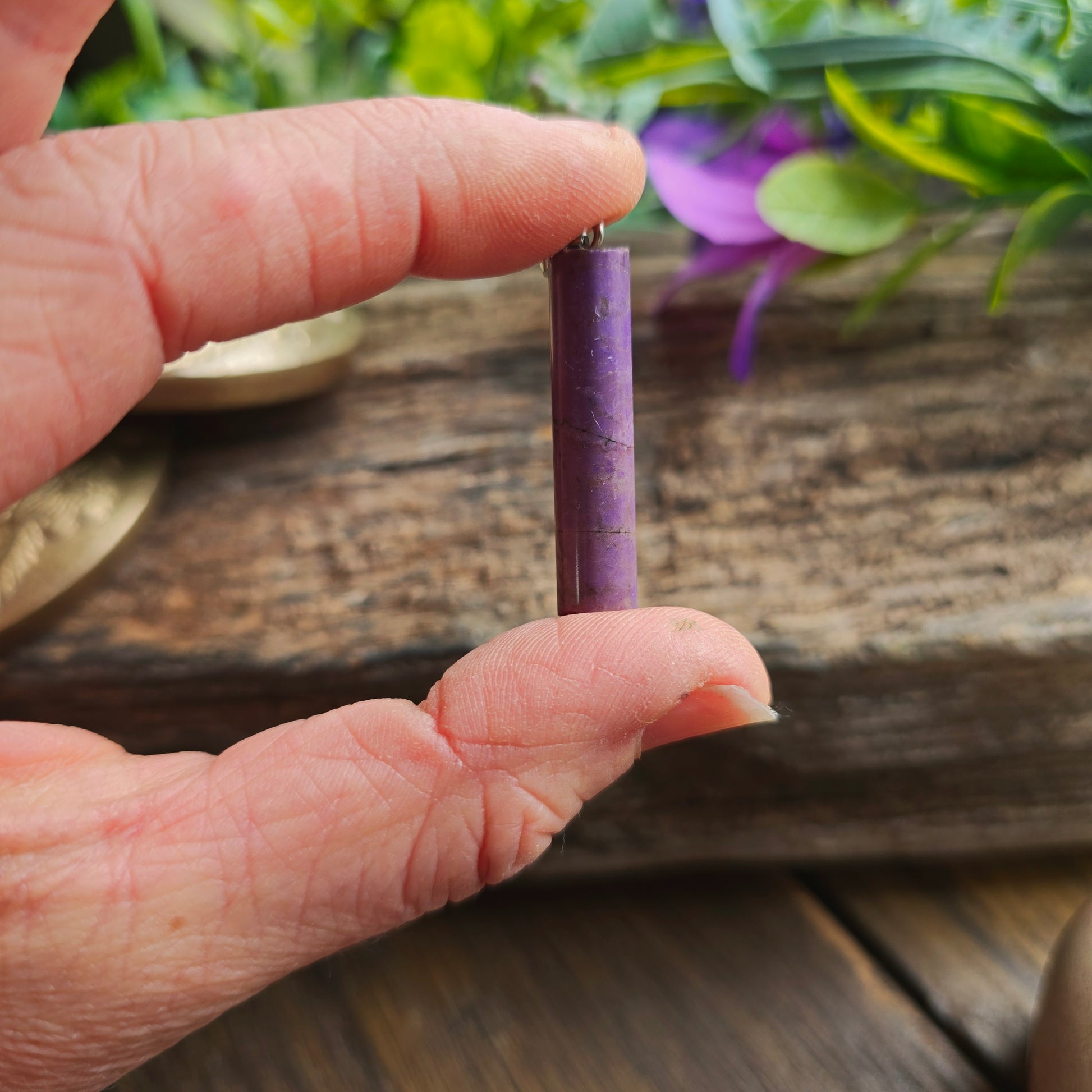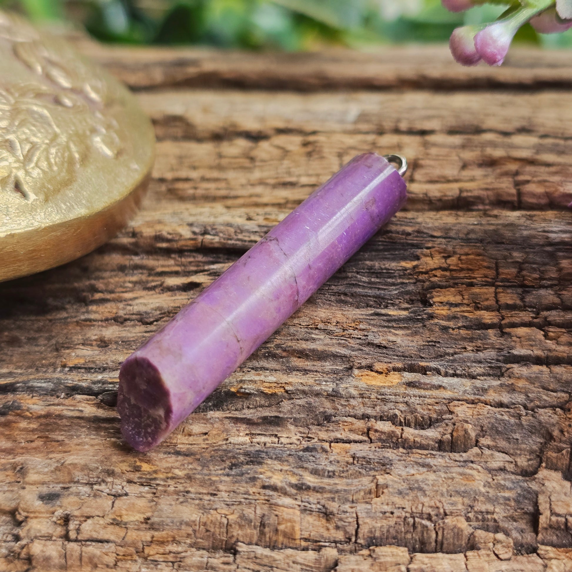 Un pendentif Totem à la forme tubulaire, symbole d’axe, de stabilité et de lien entre la terre et le ciel. Sa silhouette verticale évoque l’alignement intérieur et la circulation harmonieuse des énergies.