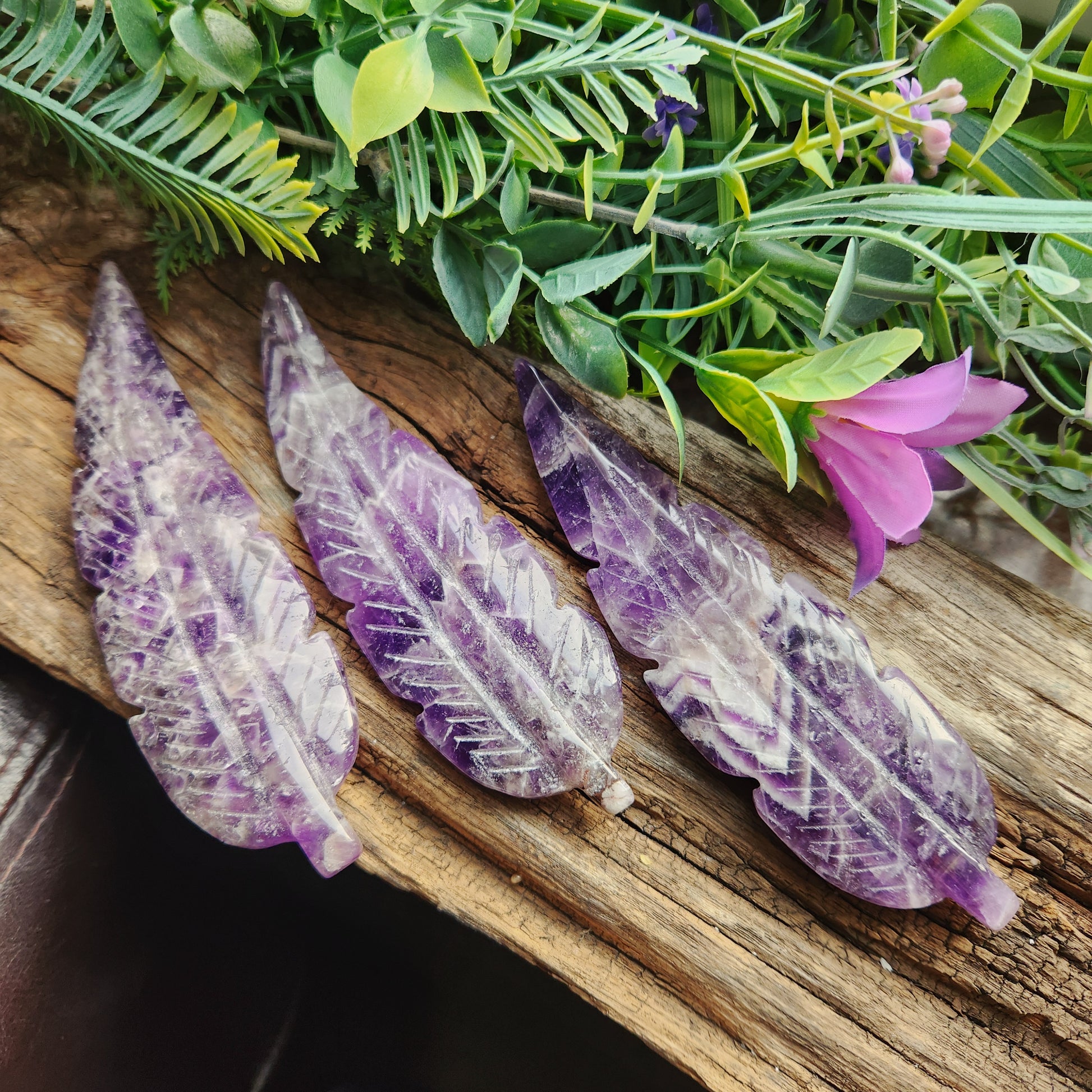 La plume évoque le cheminement intérieur, la sagesse et l’adaptabilité, tandis que l’améthyste favorise la sérénité, l’intuition et l’élévation spirituelle, guidant vers l’équilibre et la transformation personnelle.
