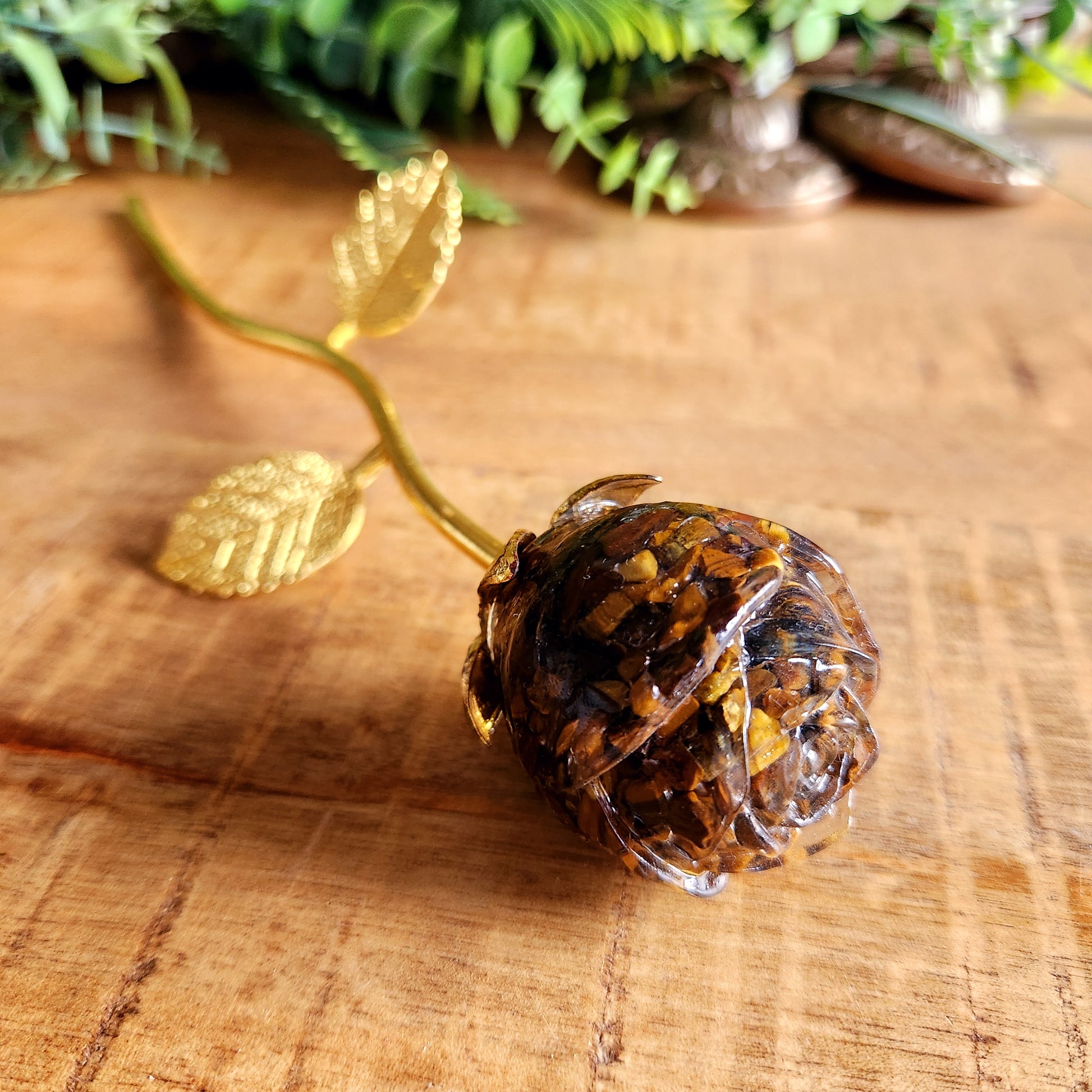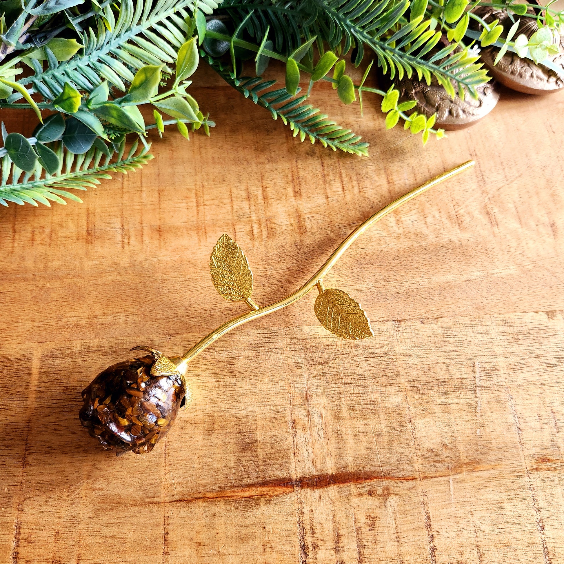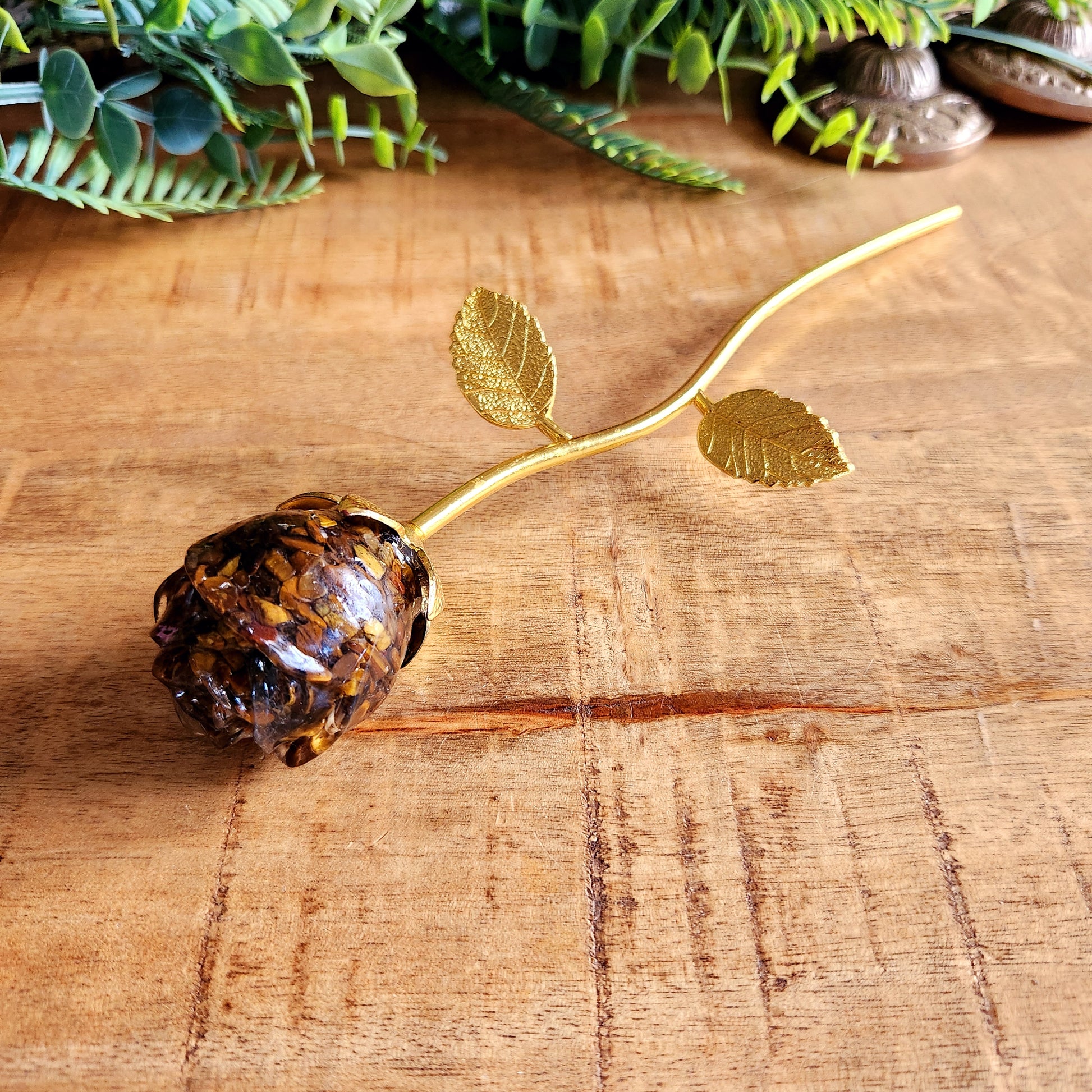 Rose en Œil de tigre - tige dorée