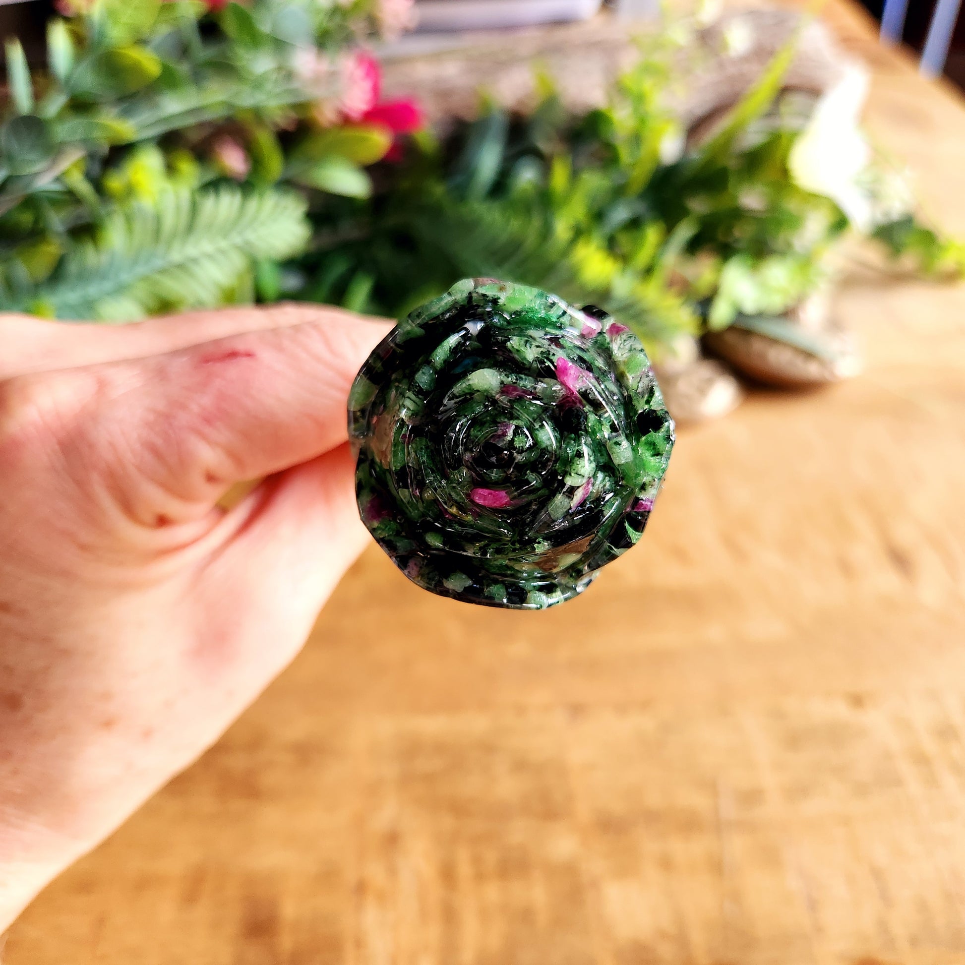 Le Rubis zoïsite est une pierre d’équilibre qui allie passion et sérénité, stimulant la motivation, l’énergie du cœur et la transformation intérieure tout en aidant à libérer les blocages émotionnels avec douceur.