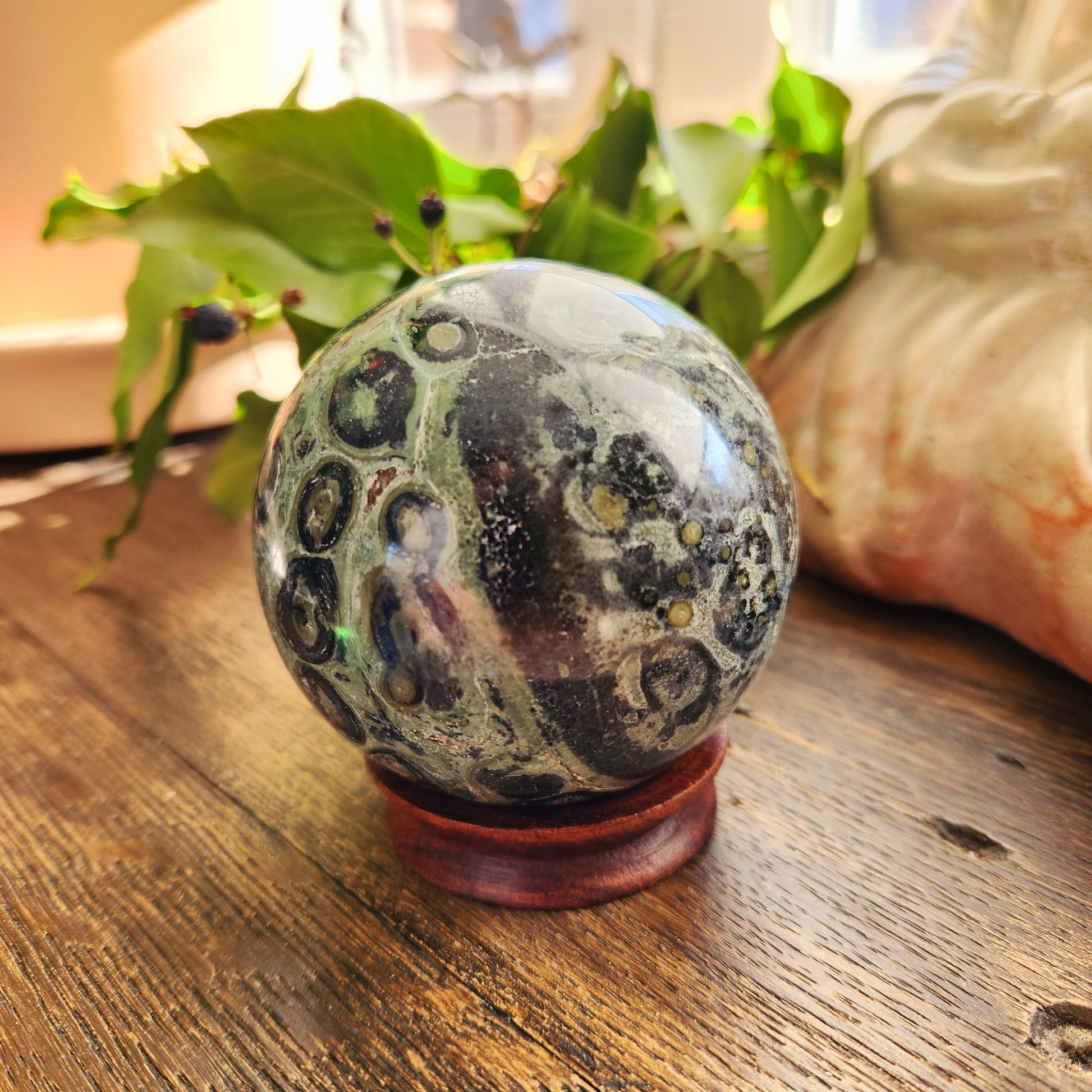 Une sphère en pierre naturelle agit comme un puissant amplificateur énergétique, diffusant son influence de manière uniforme dans toute la pièce. Grâce à sa forme parfaite, elle équilibre les vibrations, favorise une circulation fluide des énergies et crée une atmosphère harmonieuse.