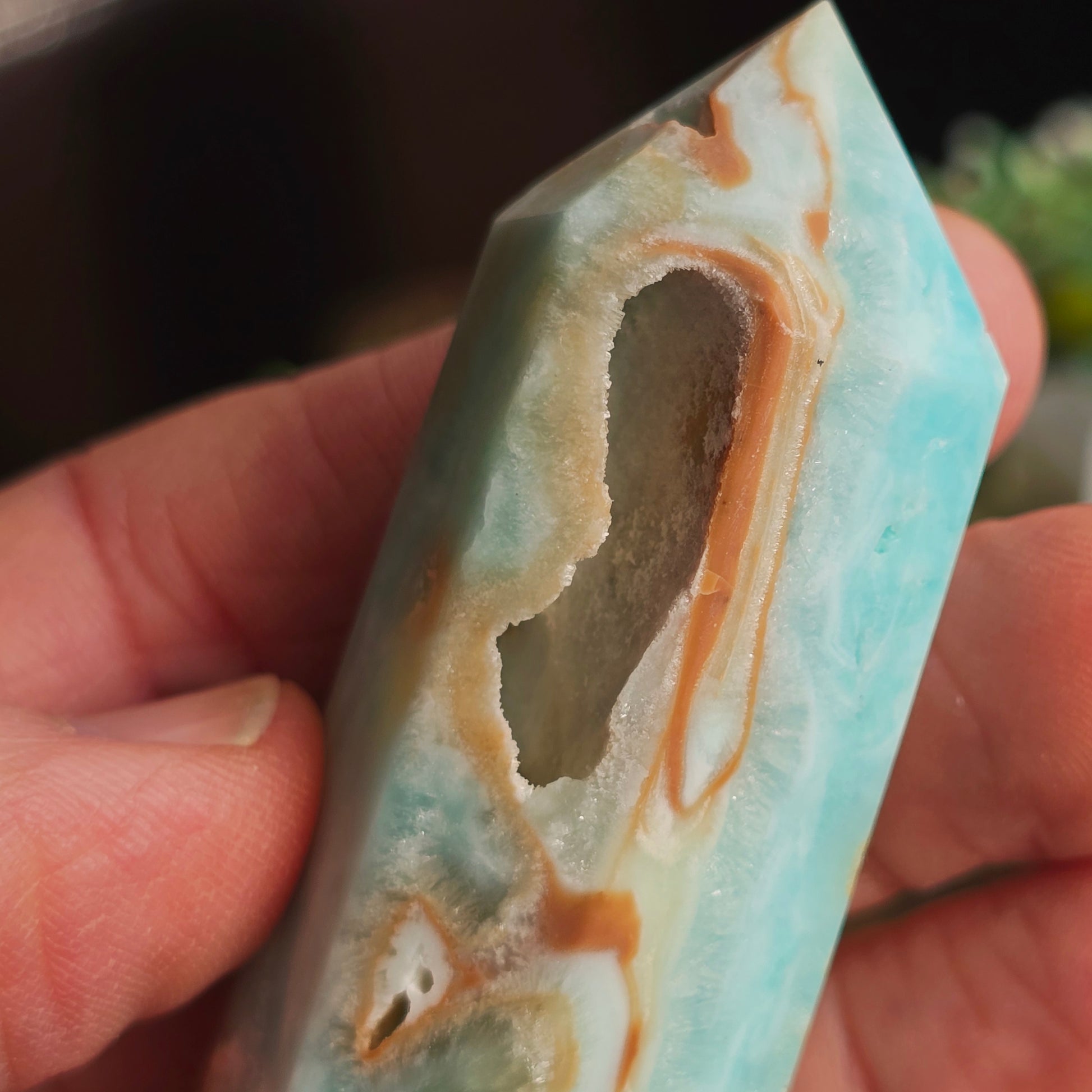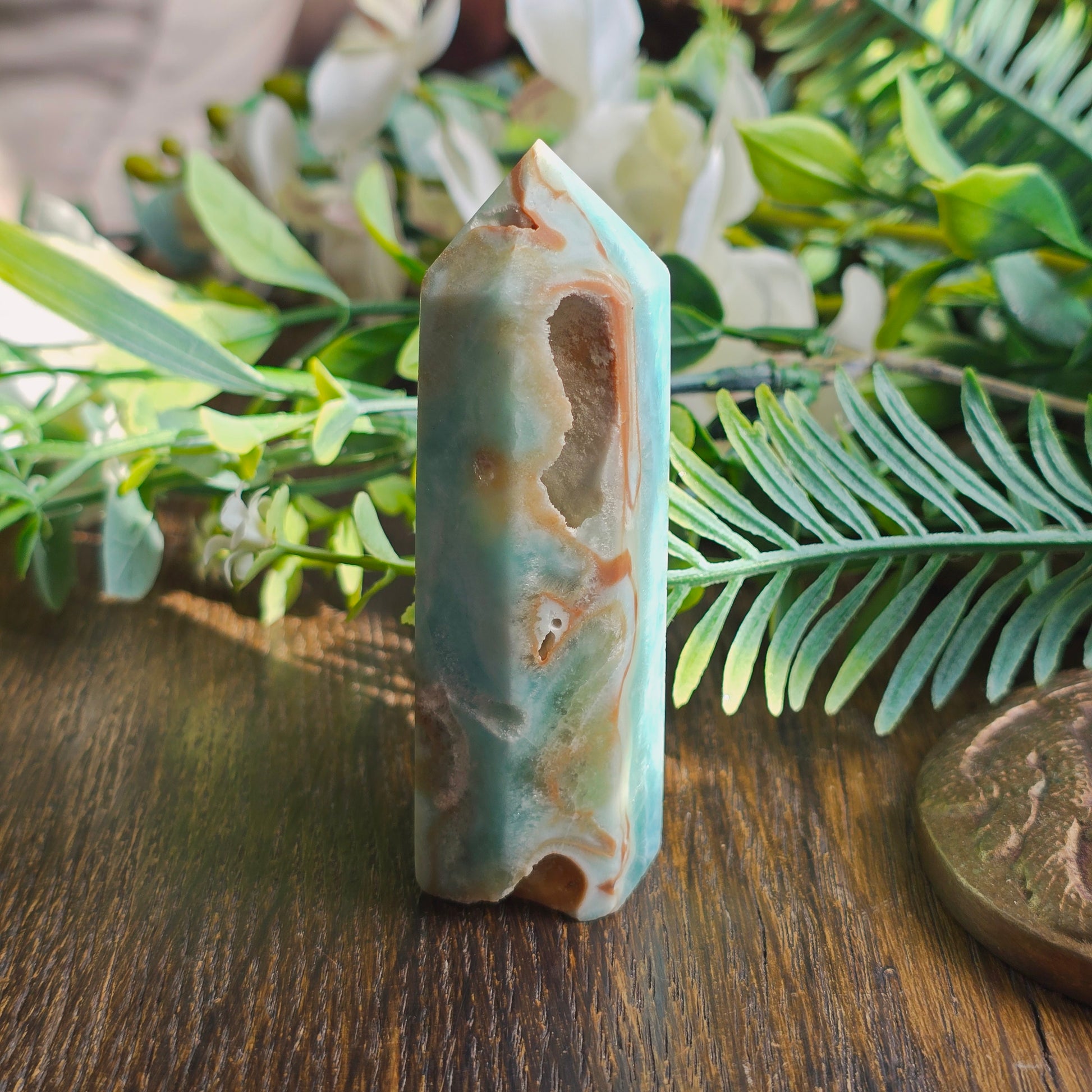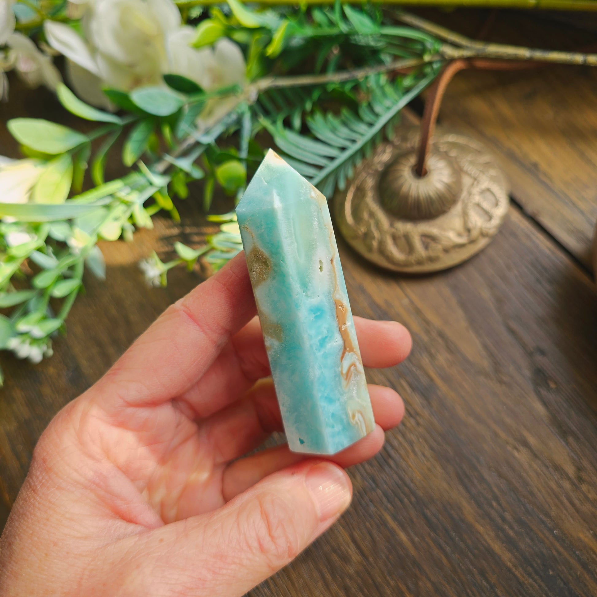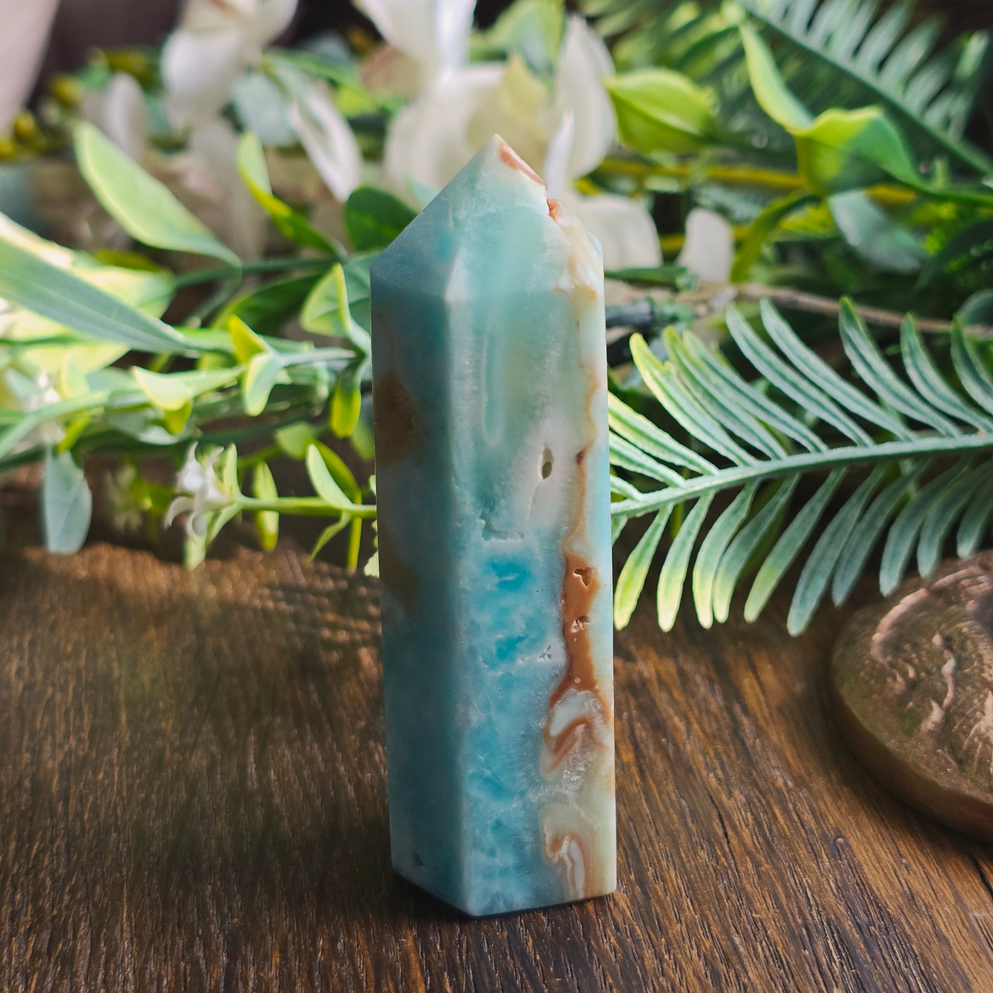 L’Aragonite bleue apaise les tensions, clarifie l’esprit et favorise la paix intérieure.
